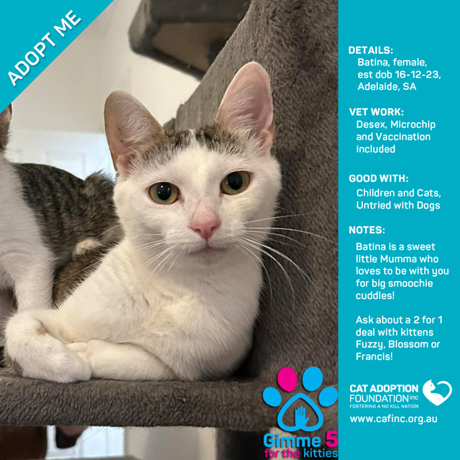 To adopt this kitty please contact Sayla on 0422 652 837 or email us at info@cafinc.org.au.