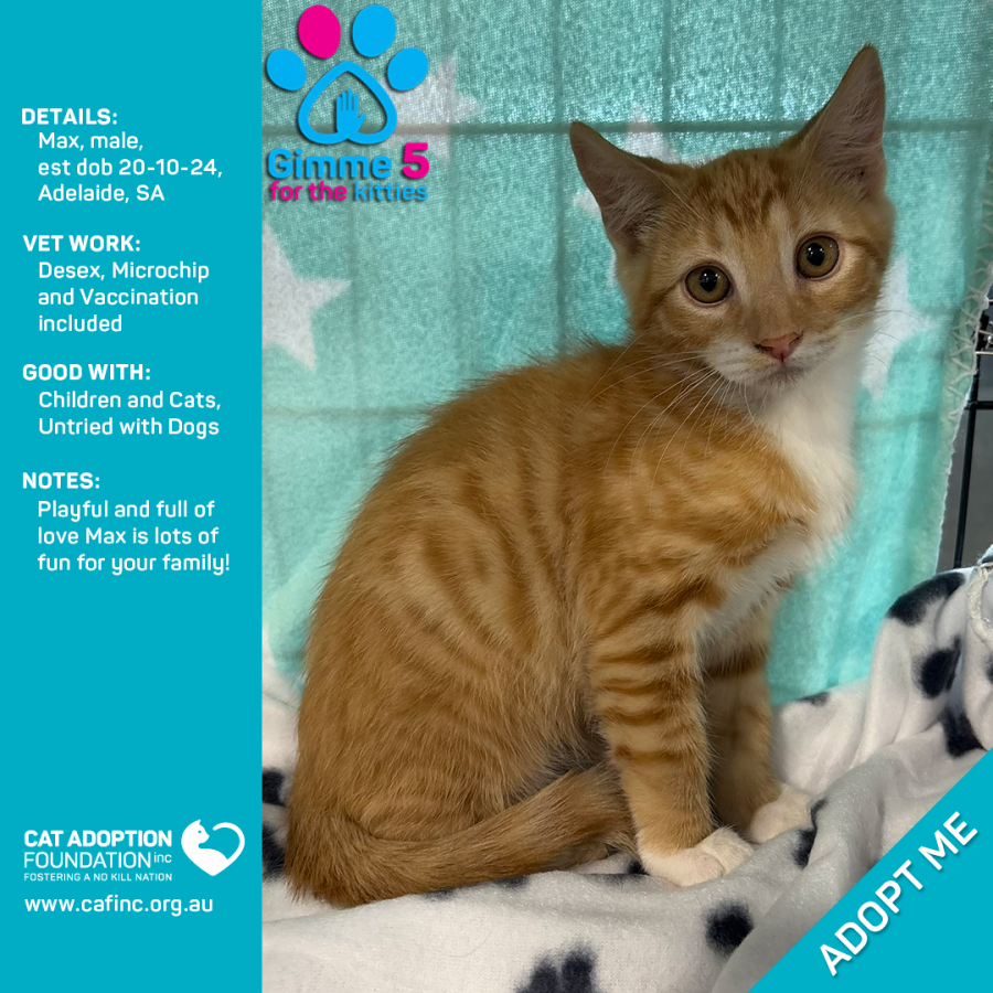 Donate to Max at Cat Adoption Foundation Incorporated via Shout