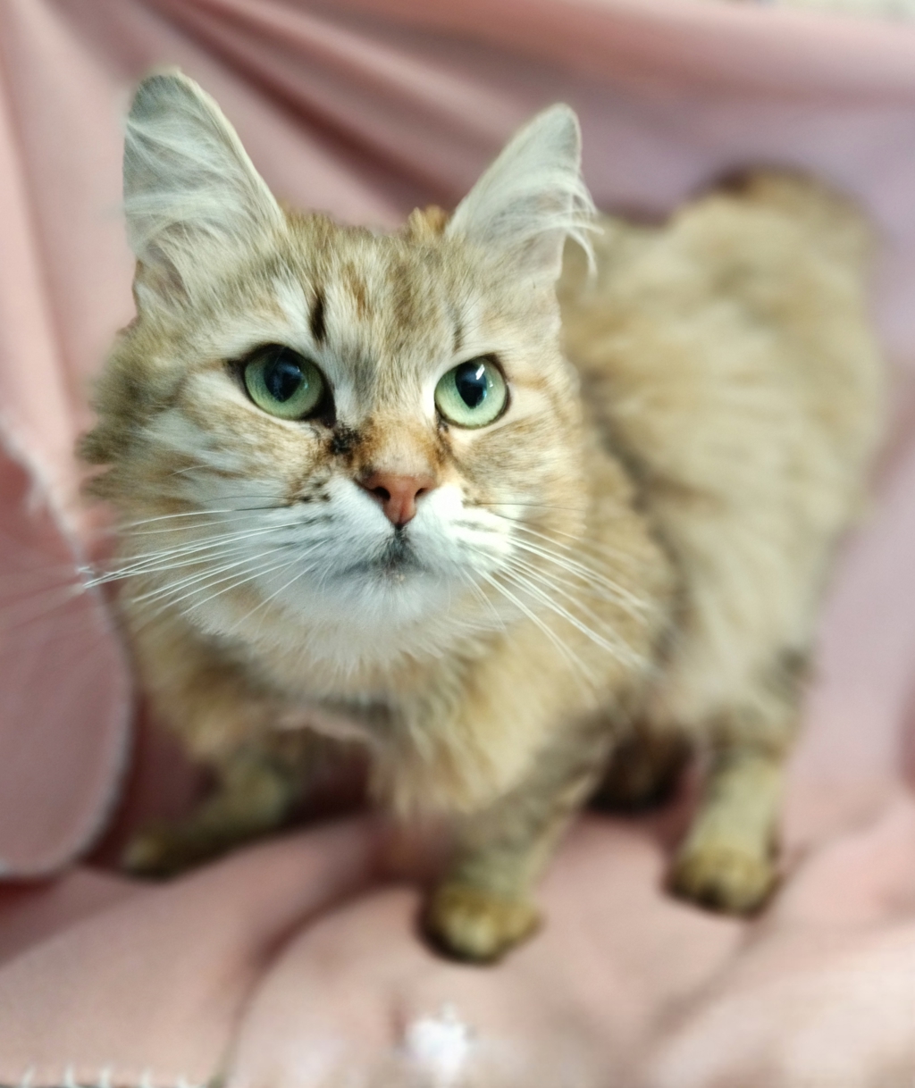 Tawny is a stunning Siberian cat with a quiet and gentle nature. She is 2 years old and has beautiful tabby markings that make her stand out. Tawny is in need of a loving and patient family who can help her build trust and feel comfortable in her new home. Regular grooming is a must for Tawny as she was previously matted and had to be groomed to restore her coat to its full beauty.