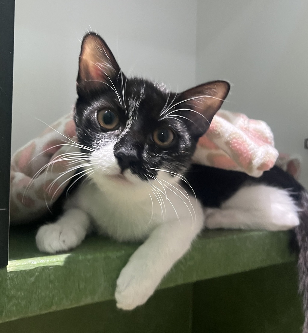 Say hello to Smores! This delicious cat is still a young girl with so much to learn about the big wide world and so would prefer to be an indoor only cat. Smores has a gentle and loving nature and may be suitable living with kids or with another friendly cat. Although she can be a bit shy at first, all Smores is looking for is someone to love. Once Smores gets to know you, she will show you her loud purr and shower you with head boops. Smores needs lots of things to do during the day when you are not home. A quick trip to the pet store to get some toys and tunnels to run through will make her day. If you're looking for a sweet companion, then Smores might be your purrfect match!