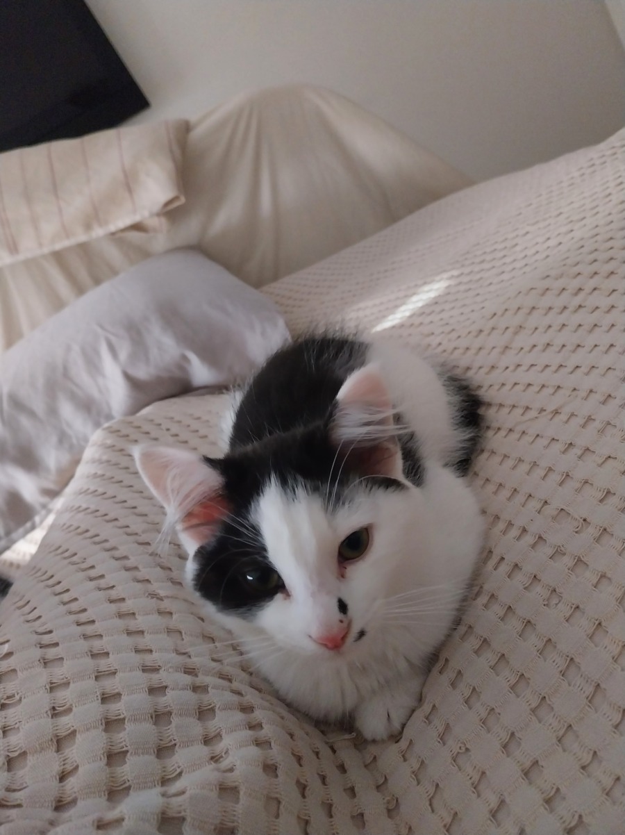 He has such a big heart, adorable eyes, unique markings and a totally lovely purr. Often unique looking black and white cats like him take a little longer to find a home, it breaks our hearts! We just need someone who will adore him because he truly is such a beautiful companion kitten. A little guy who will be good for your soul and bring a smile to your face daily.