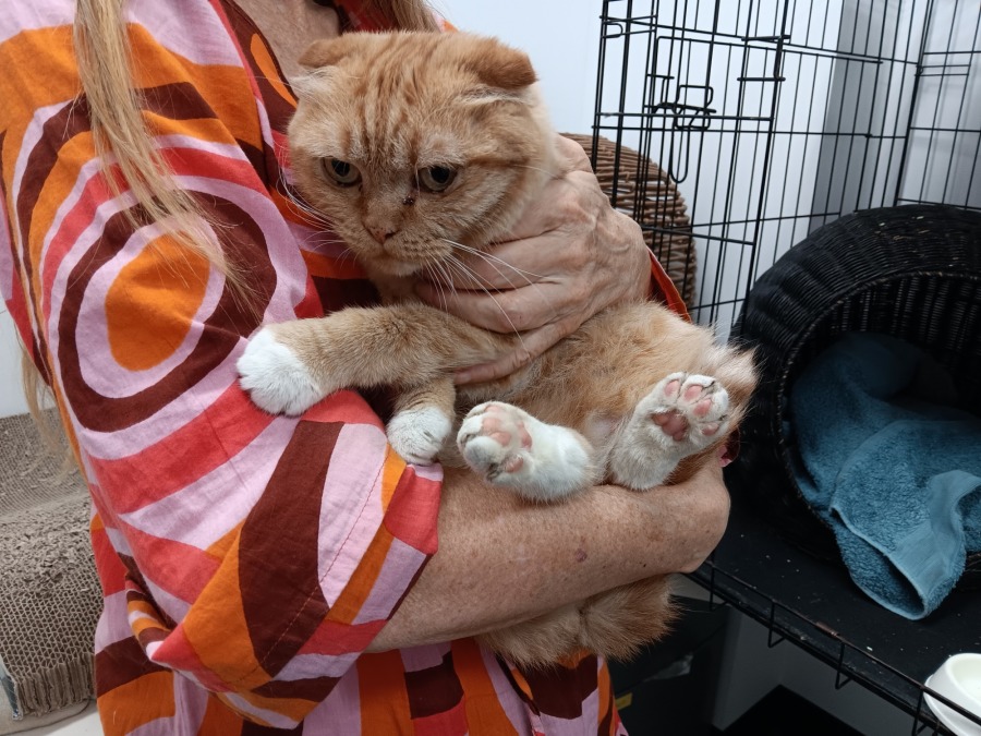 Introducing Big Boss, an enchanting feline who's capturing hearts as she bravely learns to trust and connect with people. This stunning cat has shown remarkable progress in opening up to human companionship, showcasing her gentle nature that now allows for tender moments like cleaning her eyes and enjoying soft strokes.