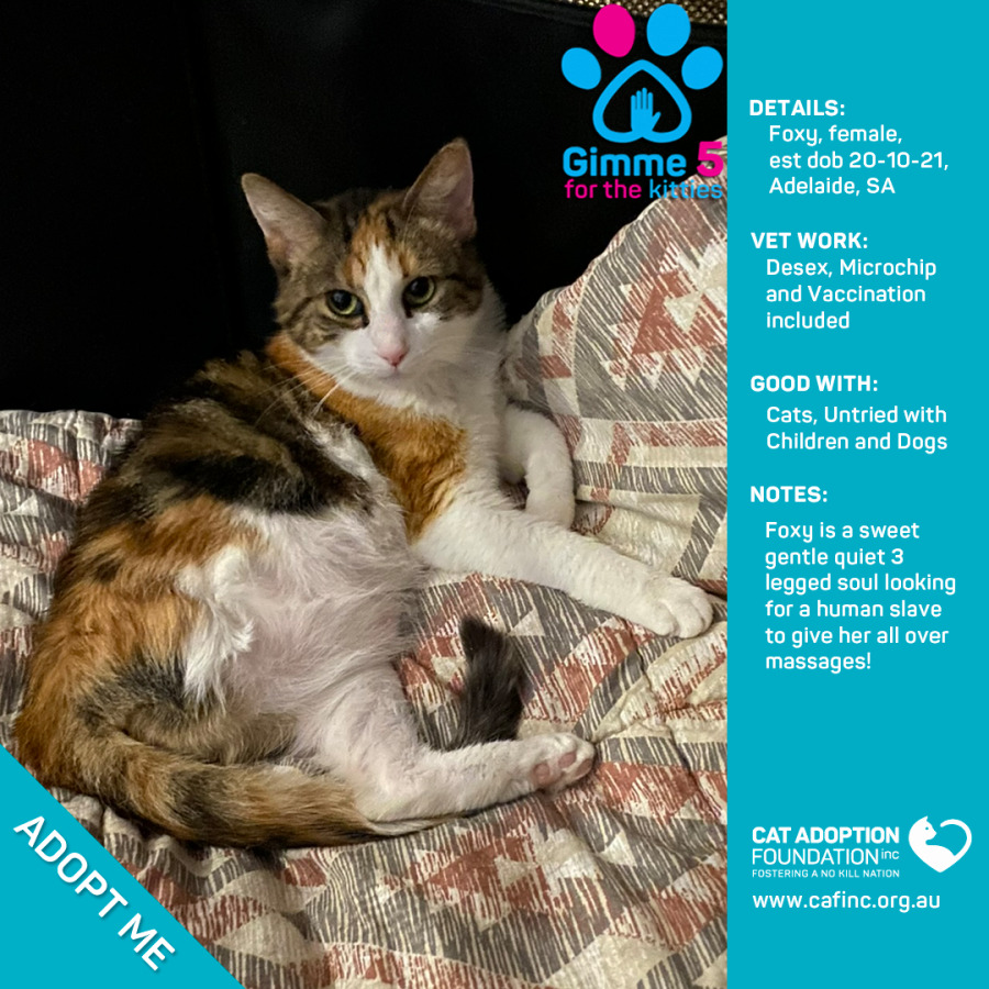 To adopt this kitty please contact Sayla on 0422 652 837 or email us at info@cafinc.org.au.
