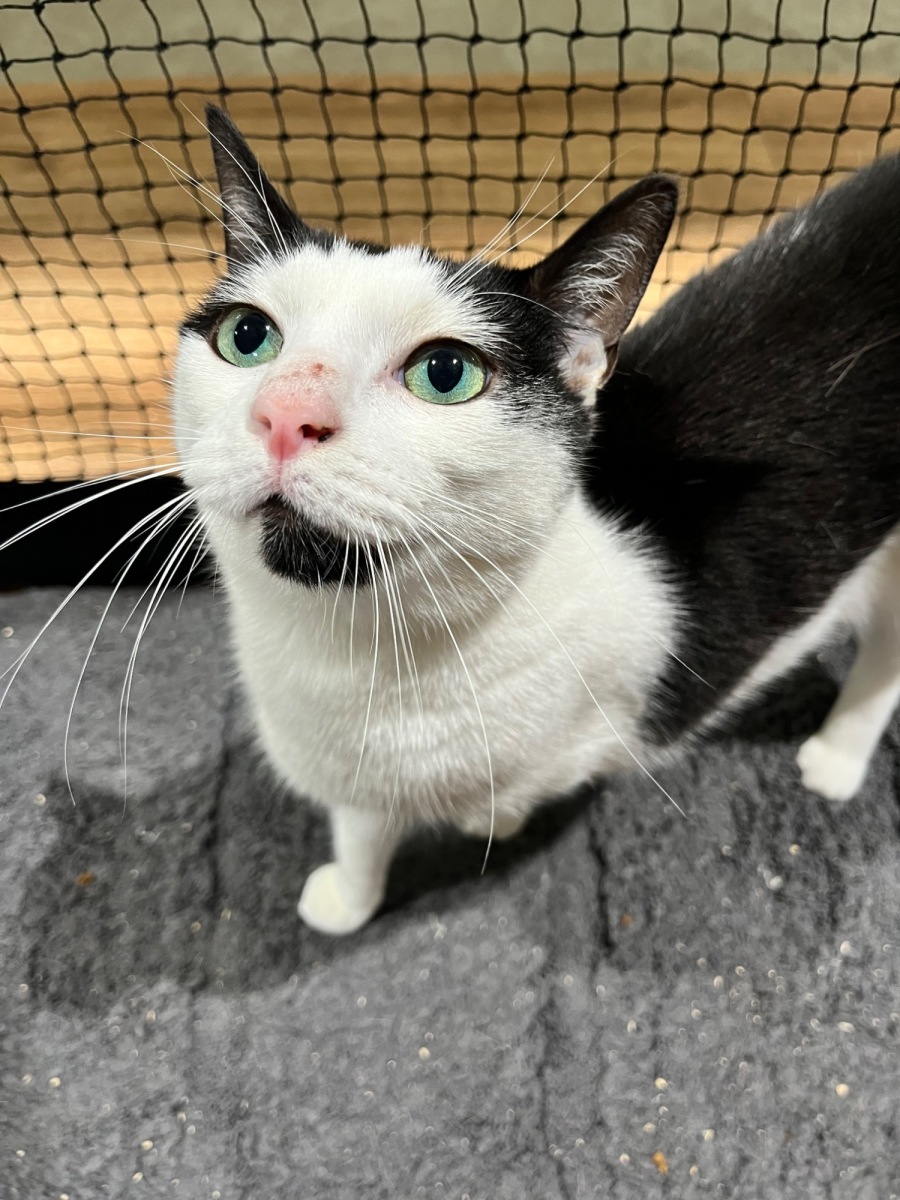 I am a smoochy feline with a heart full of affection and a looking for human companionship! I absolutely adore people and crave the attention and affection that comes with being part of a loving household. I am happiest when I am curled up next to you, enjoying a gentle pat or nestled into a cozy cuddle on the couch. My love for interaction is matched only by My ability to brighten up any room she enters with her snuggly presence.