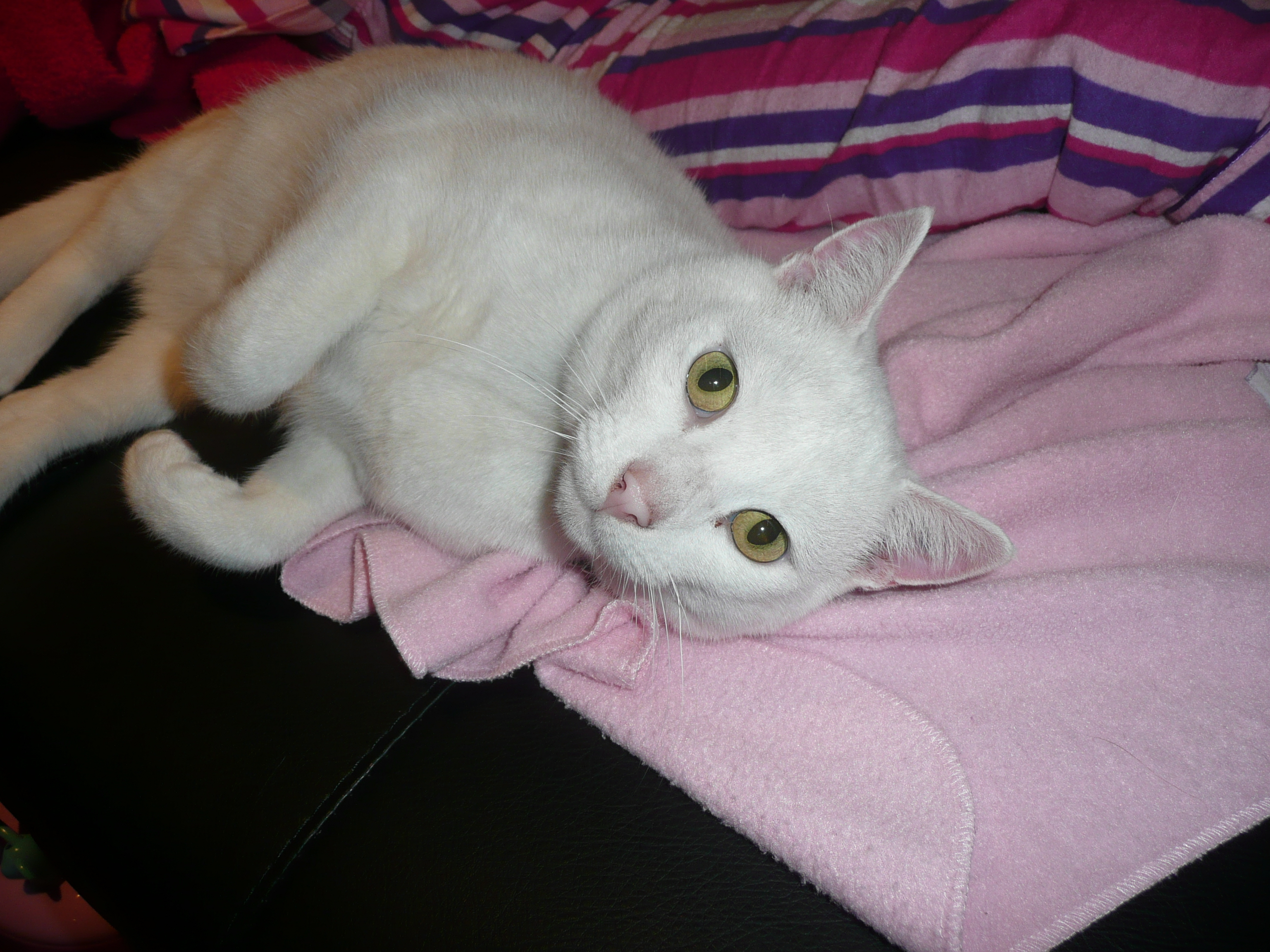 Sparkle is a gentle cat of two and a half years of age, who gets along with both male and female cats and kittens. He loves to explore the house and play tag with the male cats. He loves to sit on your lap and, to get attention, he will smooch to sit on your knee. He is placid and alert to what is going on around him, as he does not want to miss any play action. He would be suited to a family or one on one situation. Sparkle is located at doveton