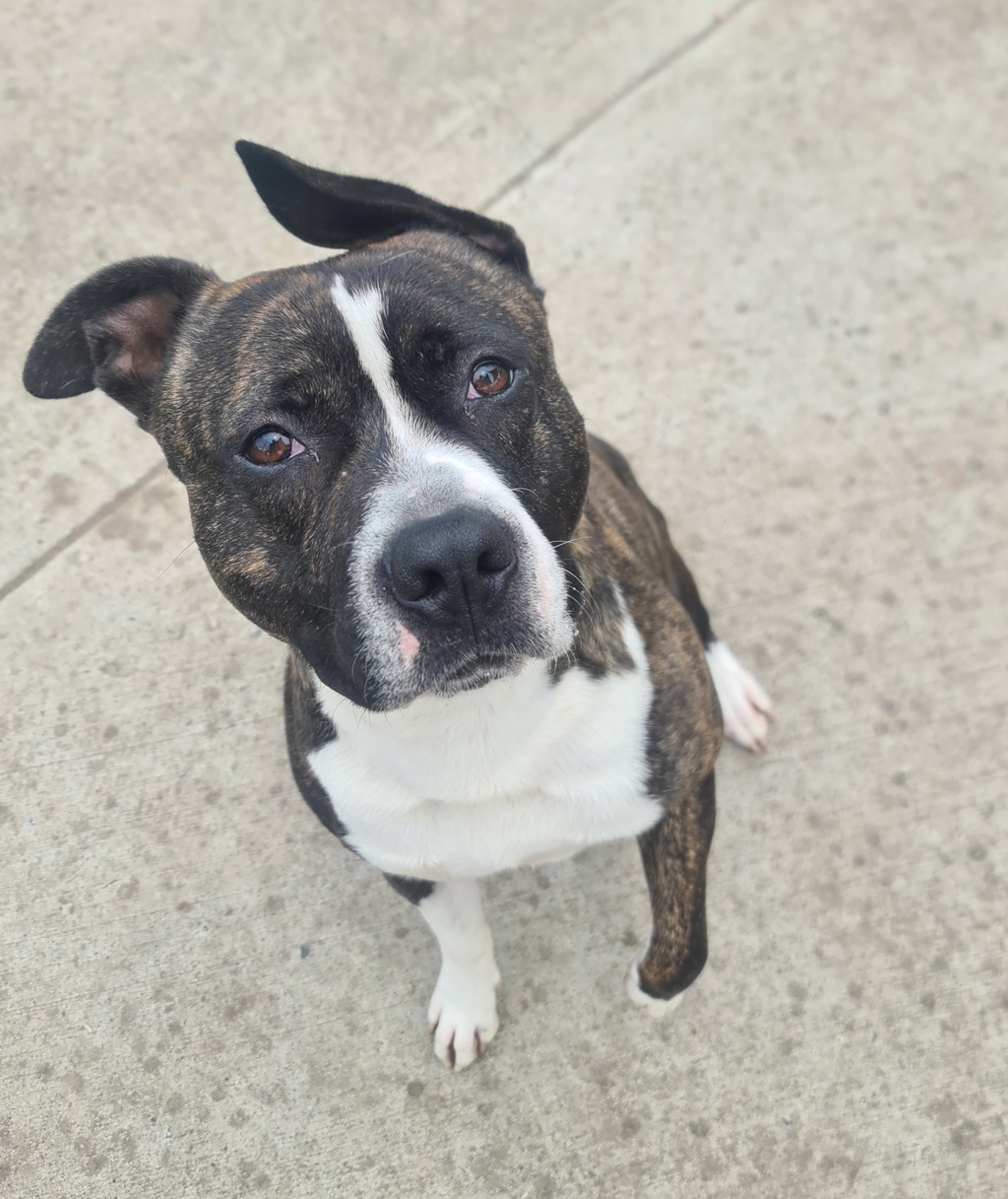 Looking for a companion to explore the world with? Ace Venture, a 1-year-6-month-old American Staffy cross, might just be your perfect match! With his striking brindle coat and charming personality, Ace is ready to win hearts and find his forever family.