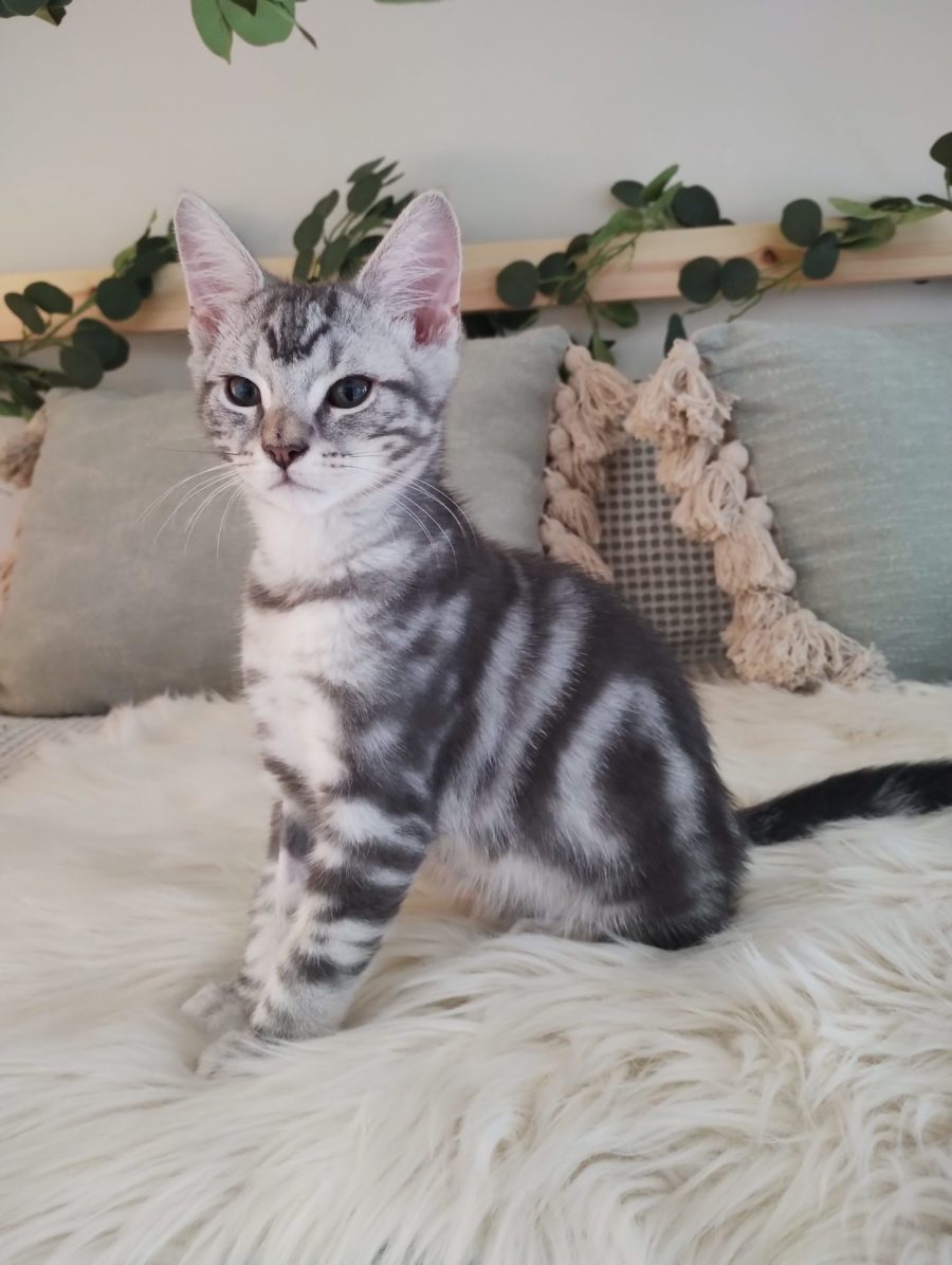 I am a huge bundle of energy!!! I am striking with my grey marbled coat and can play endlessly for hours. I chat to my foster mum in baby cries and I love a belly rub, any type of contact and I am a big purrer. I am so entertaining to watch. When in play mode I cant be caught as I am fast and crazy. I was quite hesitant when I entered my foster home, I had only been use to a cage for most of my life so the open spaces to explore blew my mind!!! I am pictured with my brother Raphael, we are a gorgeous pair. All my vet work is done and I am ready for a loving home