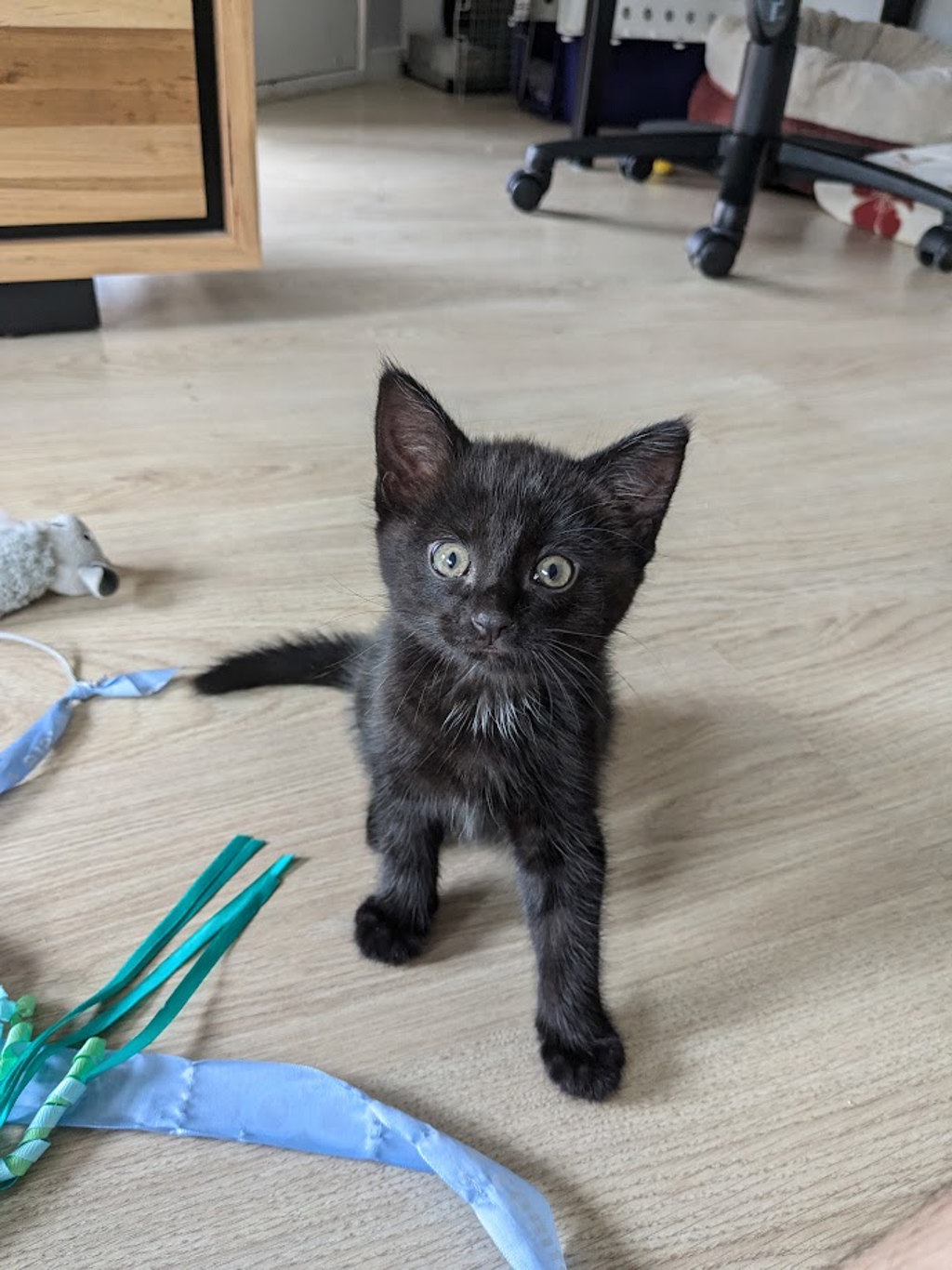 Lemon is an affectionate and playful kitten with a personality as bright as her name. She's incredibly friendly and loves nothing more than spending time with her humans. Whether it's chasing after toys, snuggling up for a cuddle, or showing off her curious, quirky nature, Lemon brings joy to every moment.