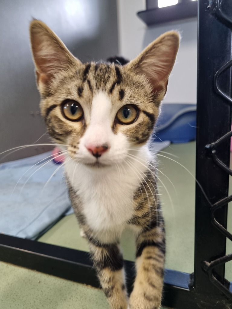 I'm just a kitten but I've got a personality as big as a lion's roar. I'm the type of gal who's always up for a game of chase the ball or a good, old-fashioned romp with a crinkly toy. My curiosity knows no bounds, and I'm always up for exploring new nooks and crannies. I'm also a bit of a goofball.