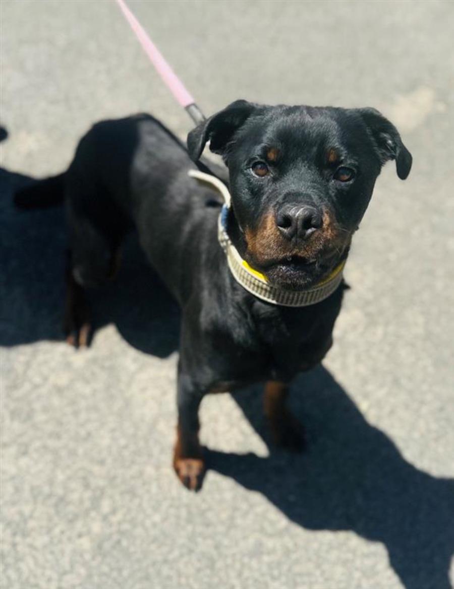 Meet Bruiser, a charismatic 2-year-old Rottweiler with a heart as big as his charming personality. This friendly and happy-go-lucky pup is ready to find a new family who shares his zest for life and boundless enthusiasm.