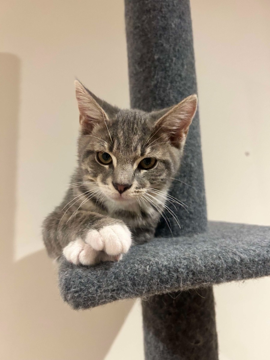 Looking for a bundle of energy and endless entertainment? Soba is your guy! This feisty little adventurer is always on the move, climbing his cat tower like a pro and pouncing on anything that dangles—shoelaces beware! Soba loves attention and will keep you laughing with his playful antics.