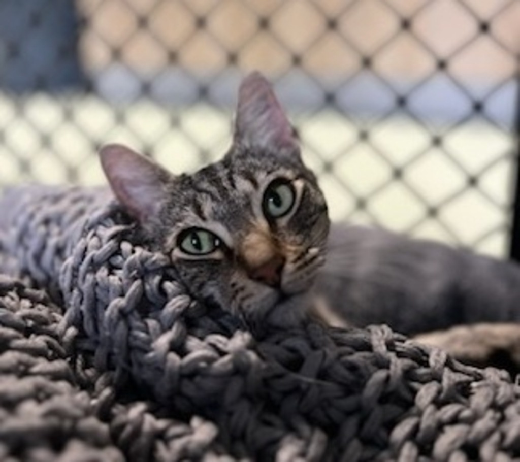 Meet Milo, a super sweet and gentle boy who is sure to capture your heart. Milo may have a quiet, laid-back personality, but don't let that fool you-he's a loving, affectionate cat who enjoys spending time with his favorite people. While he loves to curl up and hide under blankets, he's not shy at all. If you call his name, he'll happily come out for some well-deserved attention and a good chin or cheek scratch, which he absolutely adores.