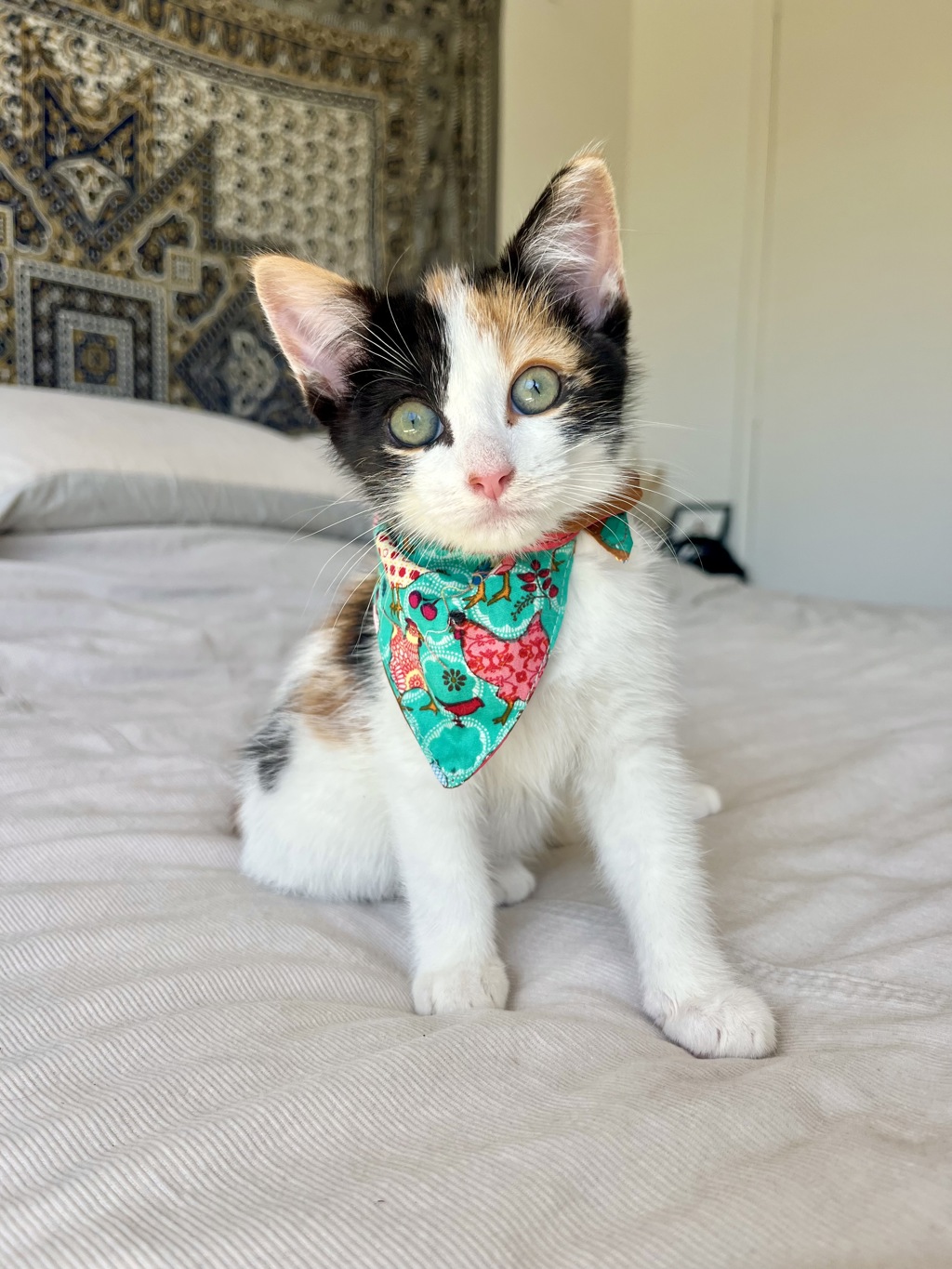Boba is a sweet and chilled-out kitten with a heart full of love. He's the epitome of an easygoing and happy feline who simply adores humans and can't get enough cuddles. If you're looking for a snuggle buddy to brighten your days, Boba's your guy!
