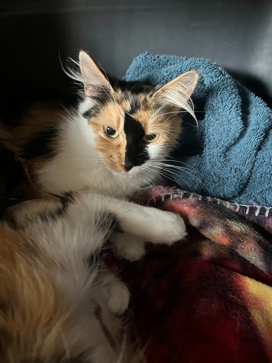 Precious captures hearts with her gentle demeanor and her love for snuggles. Her purrs of contentment fill any room with a sense of warmth, and she’ll often seek out her human companions for some cozy cuddle time.