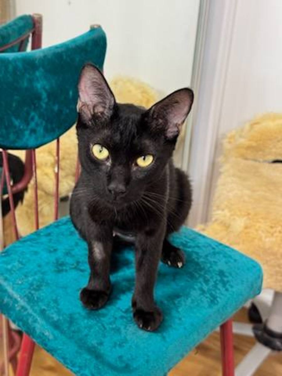 Sophie is a little timid but she is discovering toys and play, enjoying chin scratches, and making herself comfortable on the couch with her foster humans!