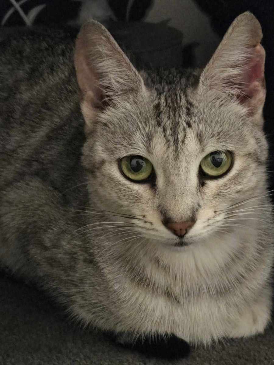 Noodle has shown she would be comfortable living with an older, calm cat who understands boundaries.
