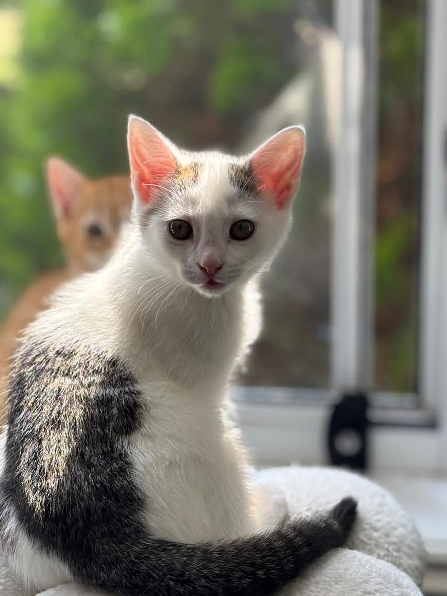 Skye is a sweetheart. If you look at her she will start to purr. She loves cuddles and could easily spend the day cuddled in your arms. She is also super active and loves to play and climb. She loves playing in tunnels and with anything that moves. She is great with kids and other cats.