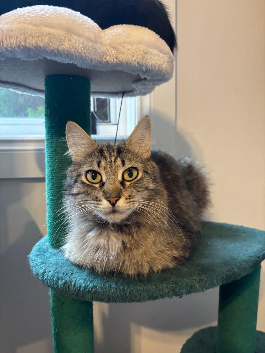 Miley also loves to sit in the window and see what is going on outside. She isn’t a super active kitty and isn’t overly interested in toys. She does love to explore and try out new places to sleep. She is amazing with kids; she loves people.