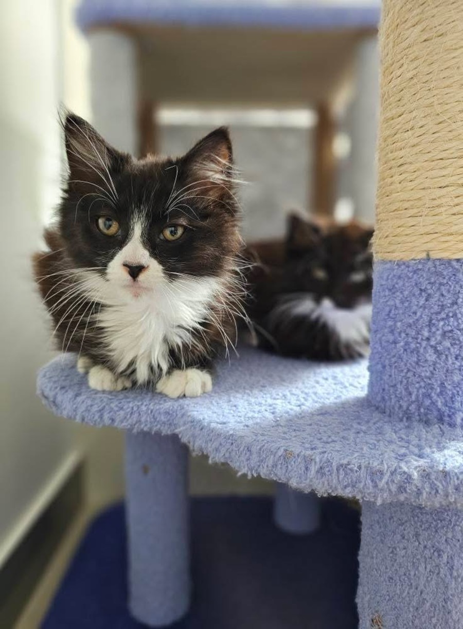Soot, an adorable tuxedo boy who’s ready to steal your heart! With his luxurious long hair and extra-fluffy coat, Soot is not just a feast for the eyes but a bundle of joy. You'll often find him engaging with his toys or curiously exploring his surroundings.