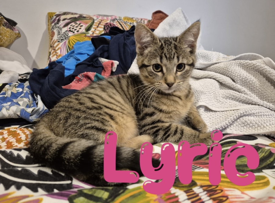 As the only boy in the litter, Lyric is the kitty who hangs back and watches what his crazy sisters are up to. He’s a little shy and reserved at first, but in a home away from his sisters who are non stop, he will find his own way and his real personality will shine through.