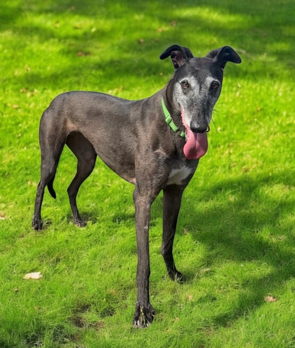 Hi, I'm Tina! I'm a nearly 5-year-old greyhound, and I'm looking for a quiet, loving home where I can feel safe and at ease. I'm a bit of a nervous girl, so I need someone who understands that I take my time to trust new things and people. I do prefer the company of females, and I find comfort in a peaceful environment. A soft bed, plenty of sunshine, and a cozy space to call my own would make me so happy.