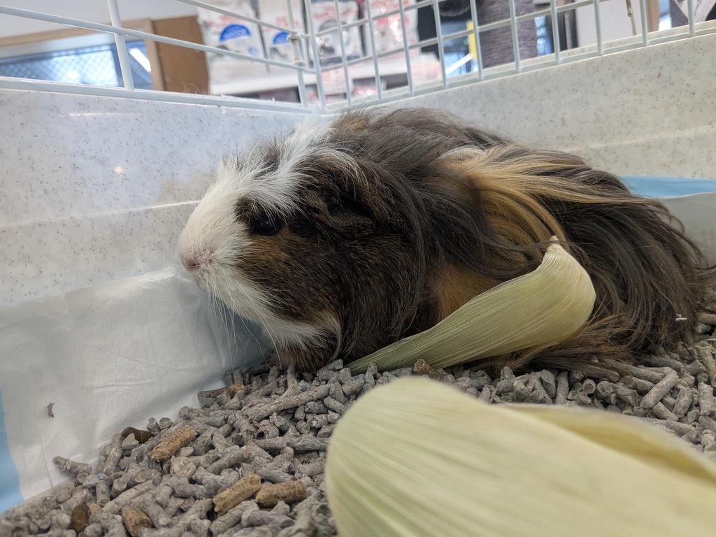 Hi there! My name is Pickle, and I'm a sweet but shy guinea pig looking for a loving home.