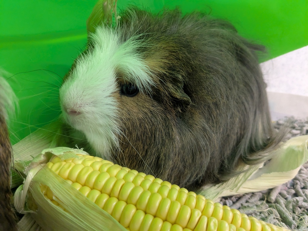 Hello! My name is Alfalafa, and I'm a sweet but shy guinea pig looking for a calm, loving home. I'm still getting used to people, so I can be a bit nervous at first, but with time and patience, I'll start to trust you and show you my true, loving nature!