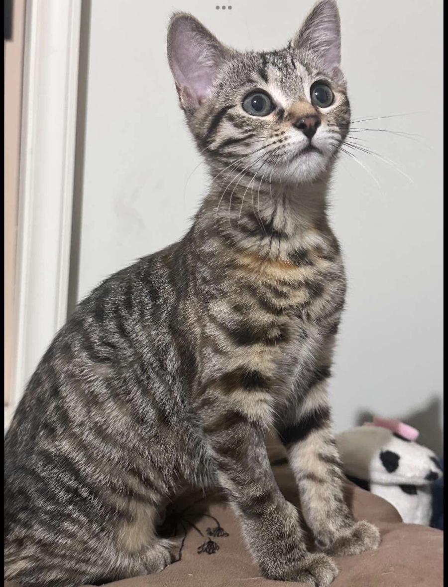 Meet Shadow, a gorgeous torbie with a captivating mix of lively energy and endearing sweetness. As the only girl among her three ginger brothers, she stands out with her playful spirit and charm, making her a delightful addition to any family. Shadow has a loveable disposition that easily captures hearts, and every day she finds new ways to showcase her adorably cute personality.