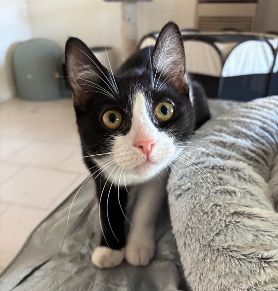 Trinity is a curious playful girl and loves to hang around other cats and her foster dad. After initially being very small, shy and quiet, she’s become a very chirpy and confident young lady who needs a family all of her own.