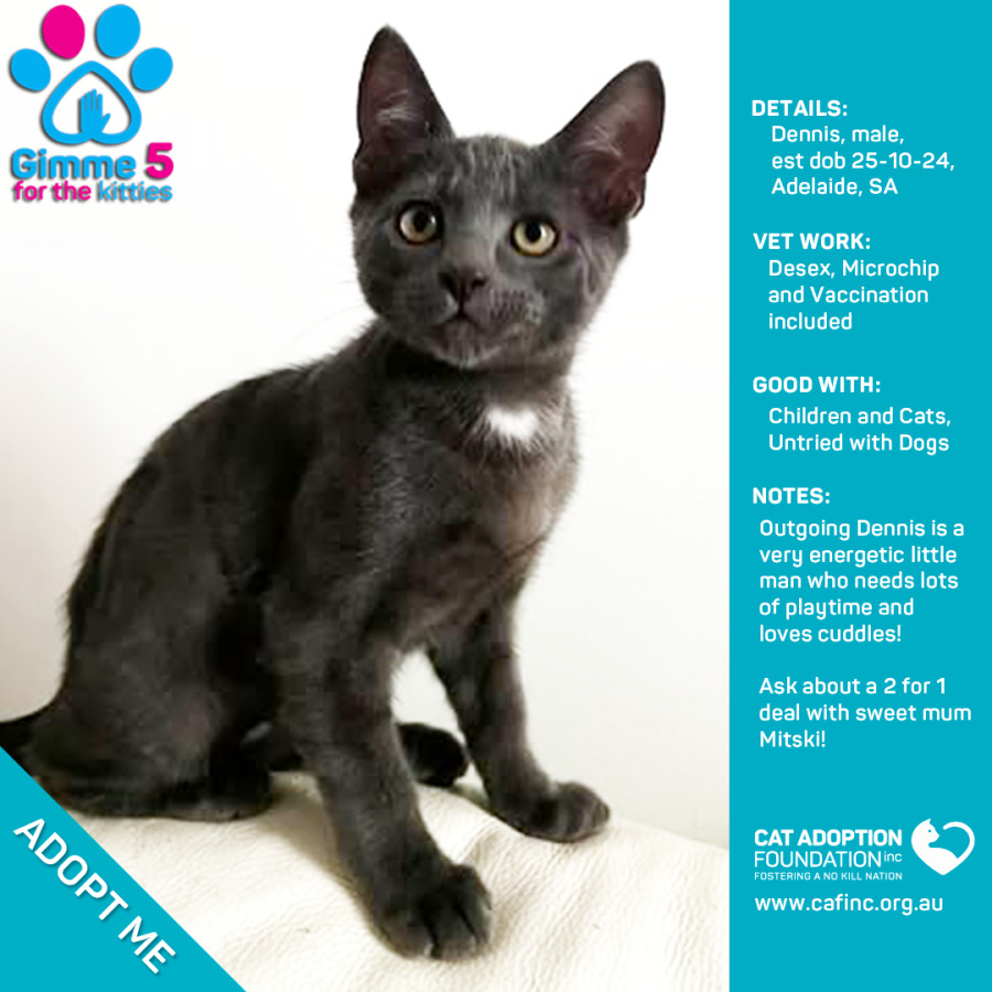 Donate to Dennis at Cat Adoption Foundation Incorporated via Shout