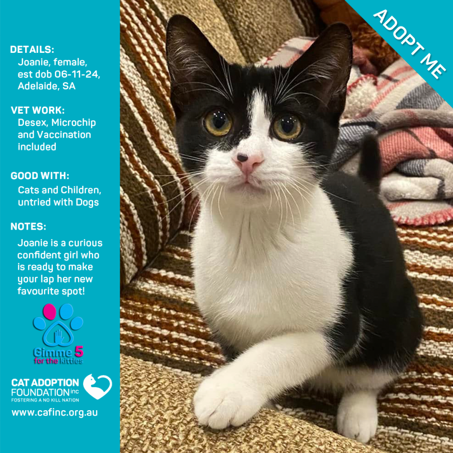 To adopt this kitty please contact Sayla on 0422 652 837 or email us at info@cafinc.org.au.