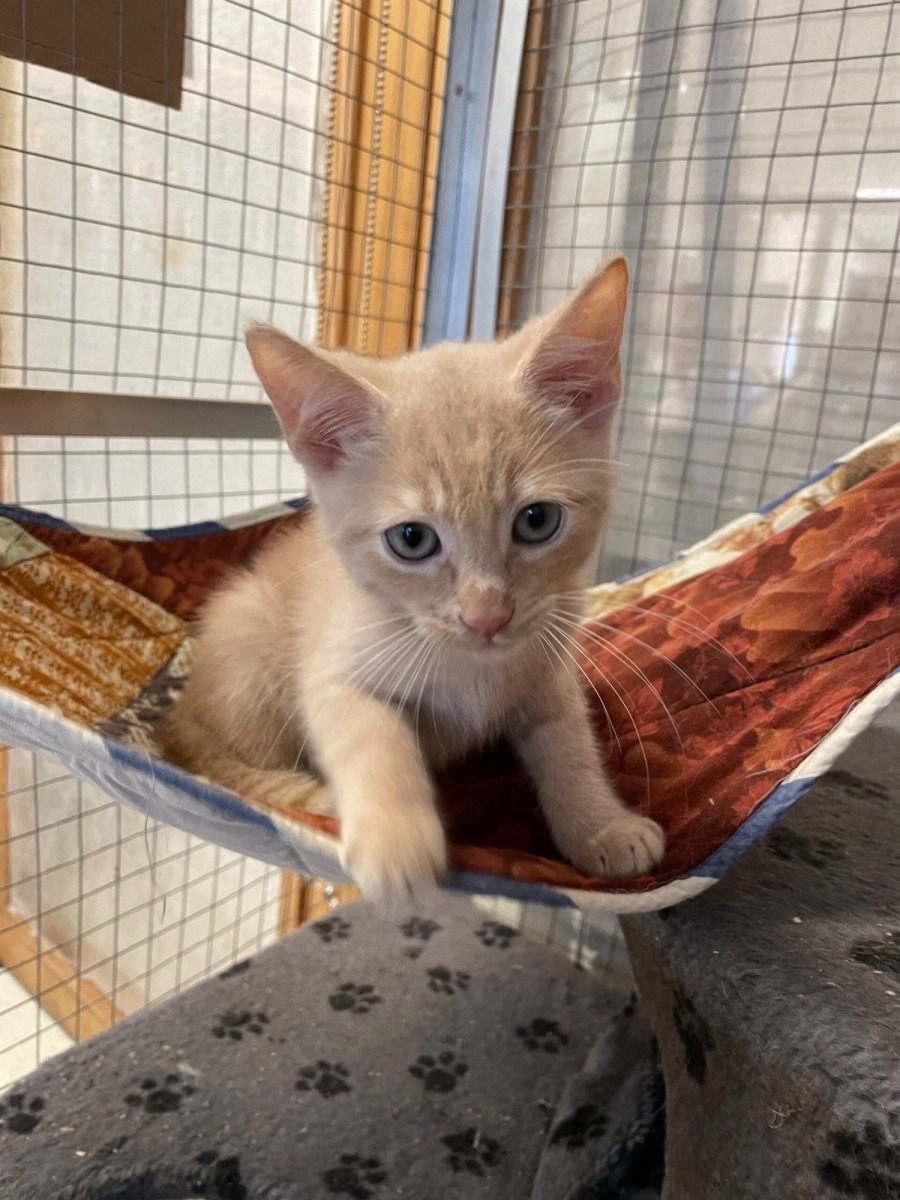 Meet Waffle – a playful and curious 9-week-old kitten with soft, silky fur in a warm champagne hue. This little adventurer loves exploring new places, chasing toys, and curling up for sweet snuggles after a day of fun. With his gentle nature and charming personality, Waffle is sure to bring a smile to your face and warmth to your heart.