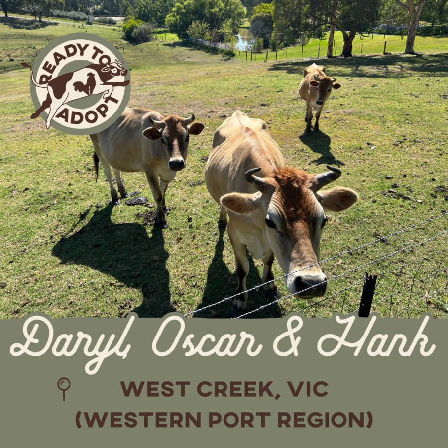 Daryl, Oscar and Hank were considered “waste” on the dairy farm they were rescued from and eventually adopted into what was meant to be their forever home. Unfortunately, they were surrendered back into our care after almost two years as their original adopters faced unexpected circumstances that prevented them from providing the long-term homes Daryl, Oscar and Hank need.