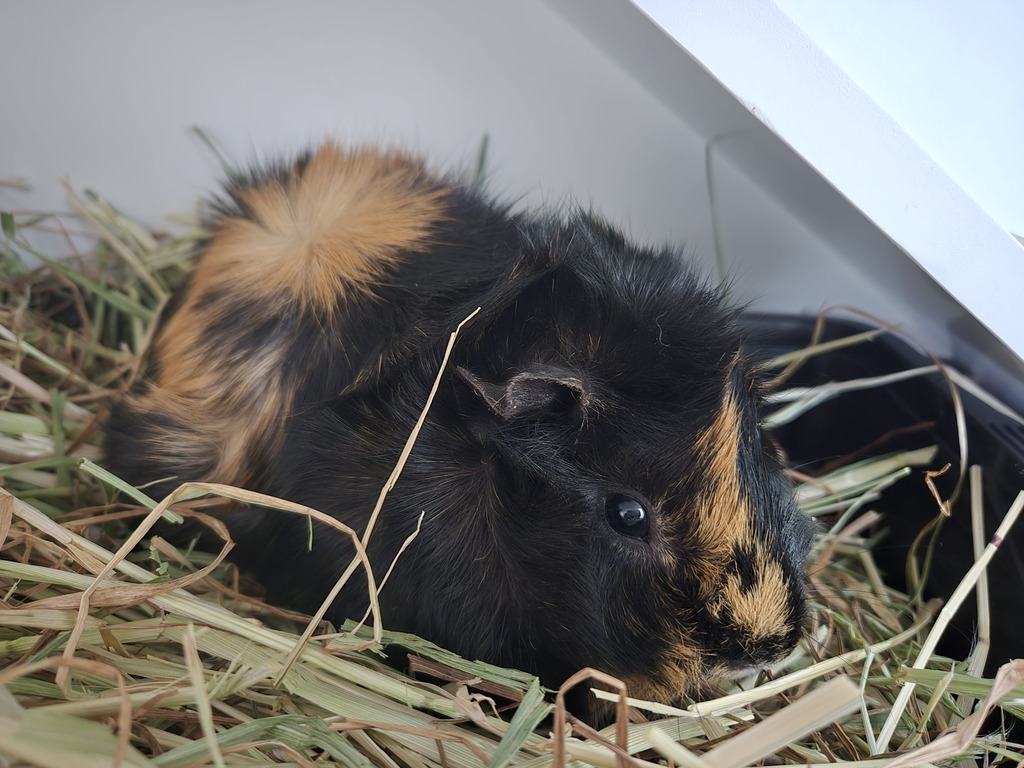 Meet Cookie, the sweet little piggie who's ready to bring excitement and joy to your home! She can be a bit shy at first, but once settled in, her active and playful personality will truly shine. She loves exploring new tunnels and entertaining herself with things to do. A large space with plenty of exciting toys, treats, and things to chew on, would be her absolute dream! She may also do well with a piggie friend, pending a meet and great. If you're looking for a charming little buddy who will fill your days with happiness, Cookie is the one for you!