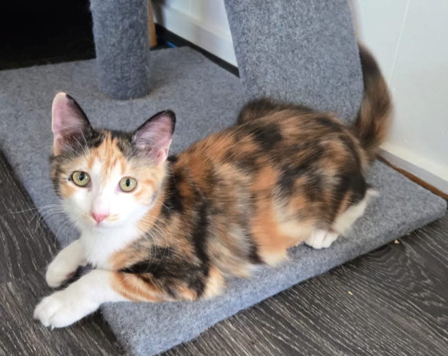 She is an adorable and affectionate kitten who is sure to steal your heart! With her playful energy and loud, rumbling purr, Bee is the perfect companion for anyone looking for a snuggly friend.