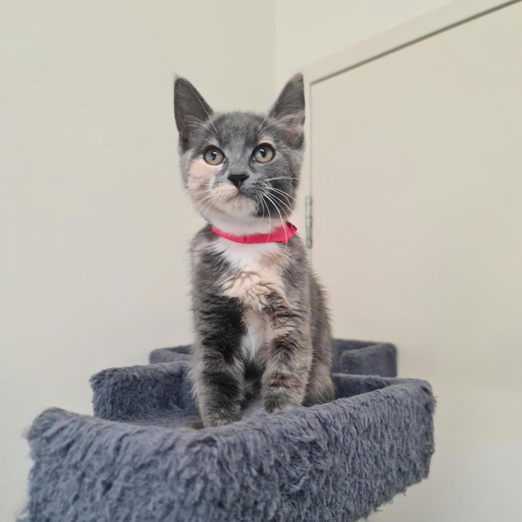 Little and adorable, Nyla is the perfect little lady for any family looking for a new cuddle buddy. Nyla is like all kittens she's playful, cuddly and loves her food! Nyla is usually found playing with her favourite toys or her furry friends. Nyla can get as little shy on first meeting, but with a little patience her adorable and sweet personality will burst through.