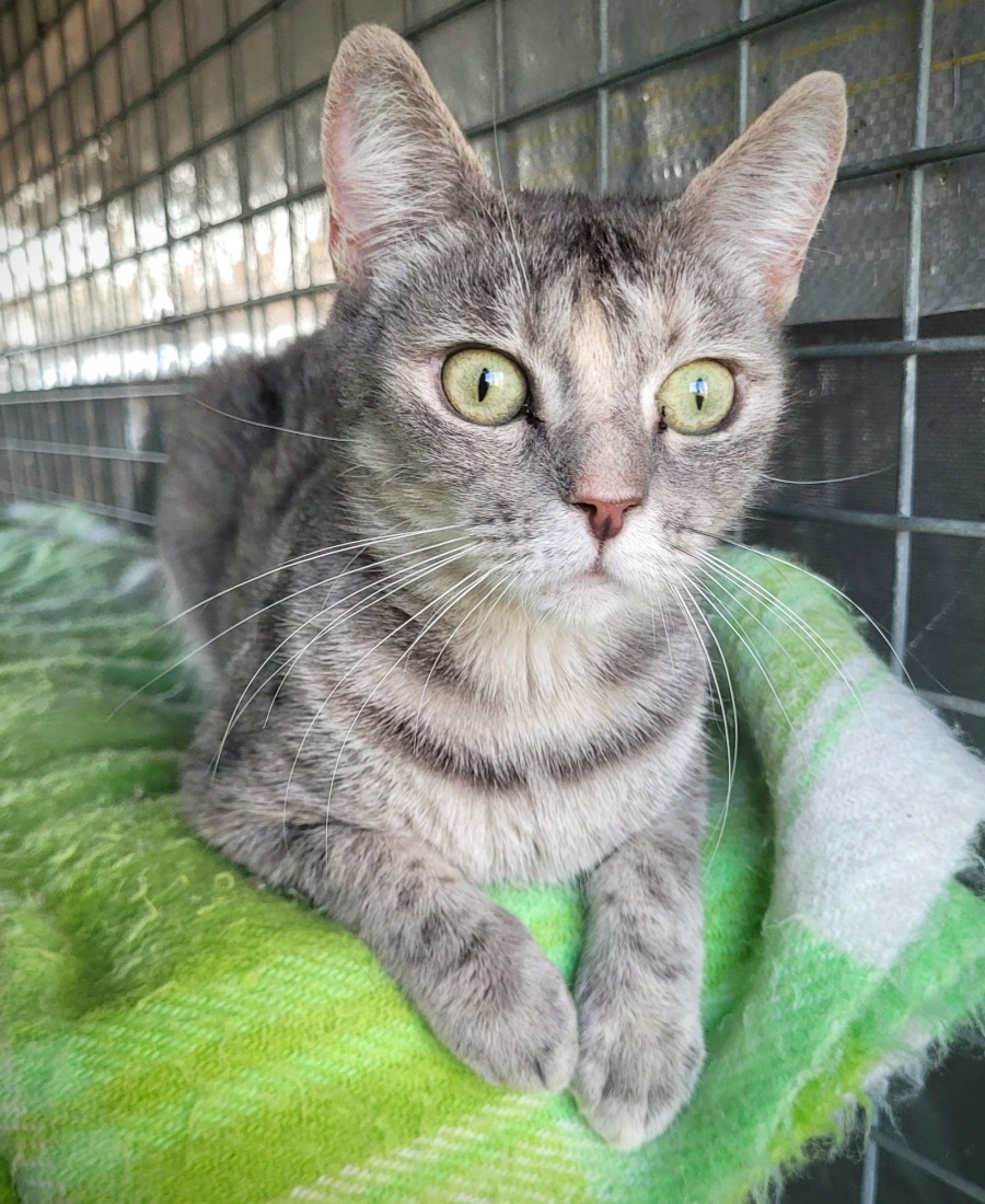 Squeaky was a give away kitten who ended up with the Chinchilla 70+ and she has had a lot of kids and grandkids due to not being desexed and that's led to a great deal of tragedy. One of her grandkids was Tiny Tim. She's being fully vetted now and is ready for a fresh start at life.