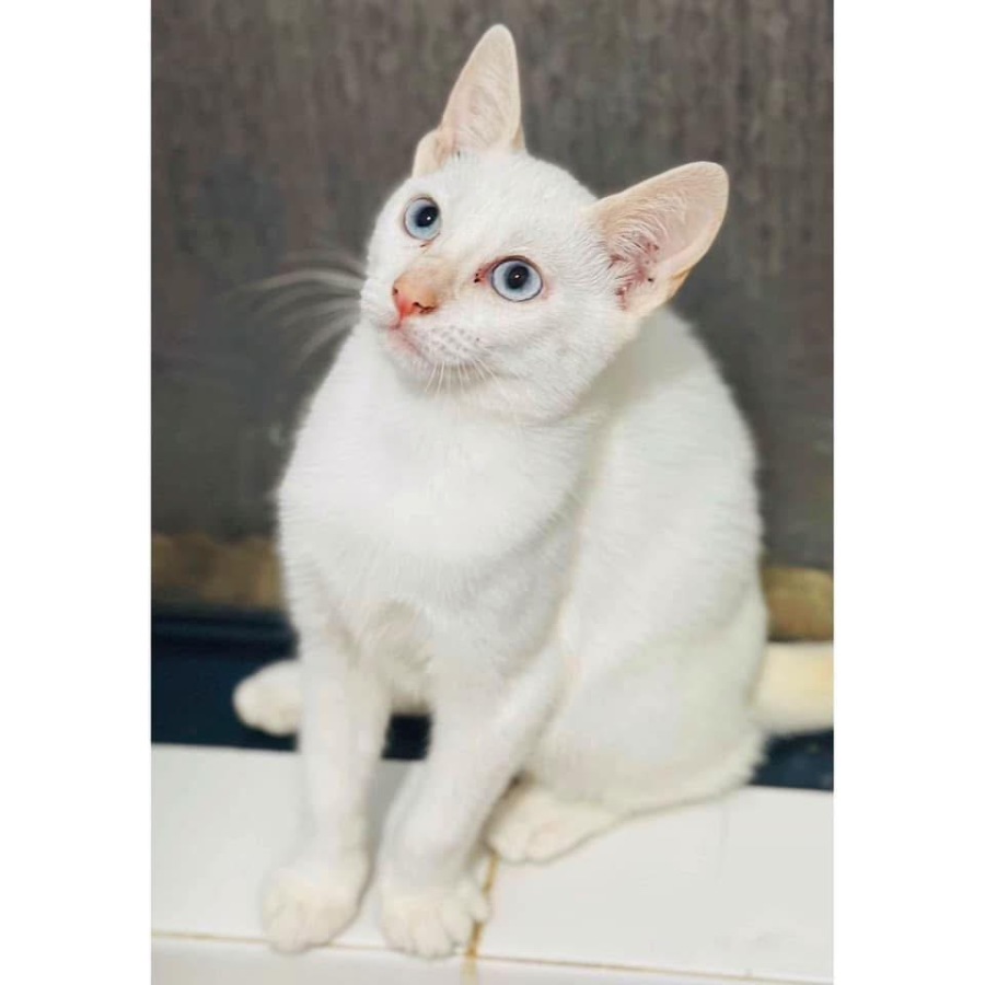 Medical Notes: Popsicle is pure white, due to this she will need to be a strictly indoor cat only as is at high risk of skin cancer; a shaded enclosed cat run would be ideal for her to enjoy some fresh air.