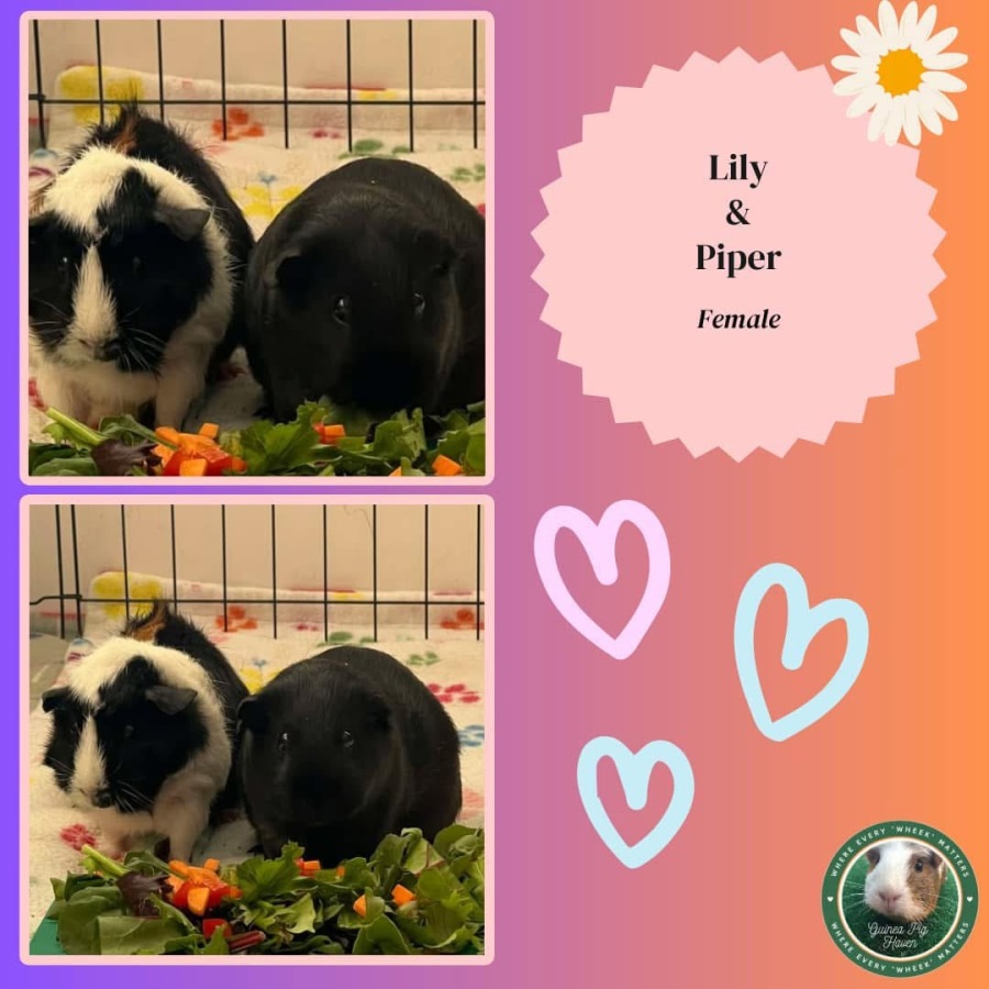 Lily is a curious baby who likes to follow in her adoptive sister’s footsteps. While she is a shy piggie, with love and time she will be a snuggle bug just like Piper!