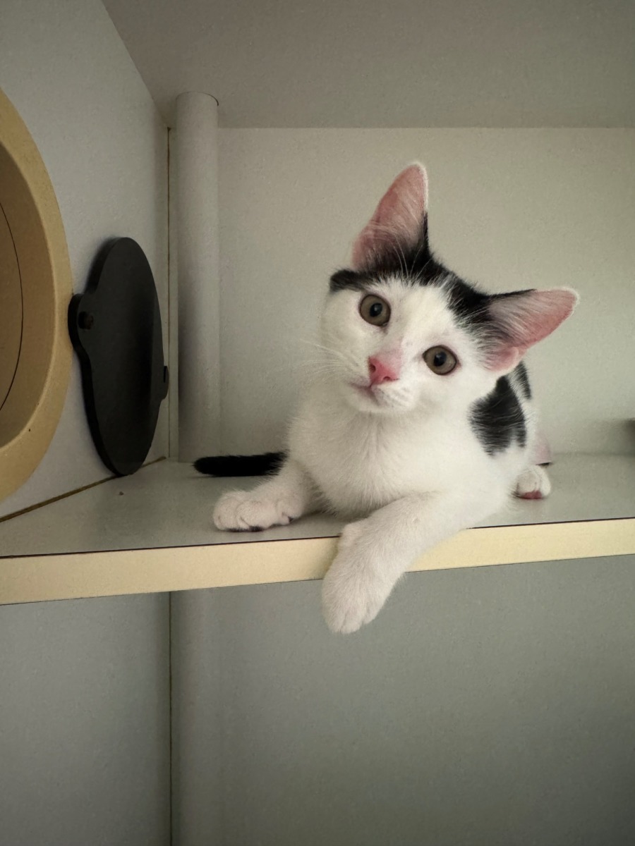 Due to Pie's young age and her sweet nature, we believe she would do well in a home with a fellow feline friend or two to cuddle and play with as she lights up whenever she sees another cat out and about.