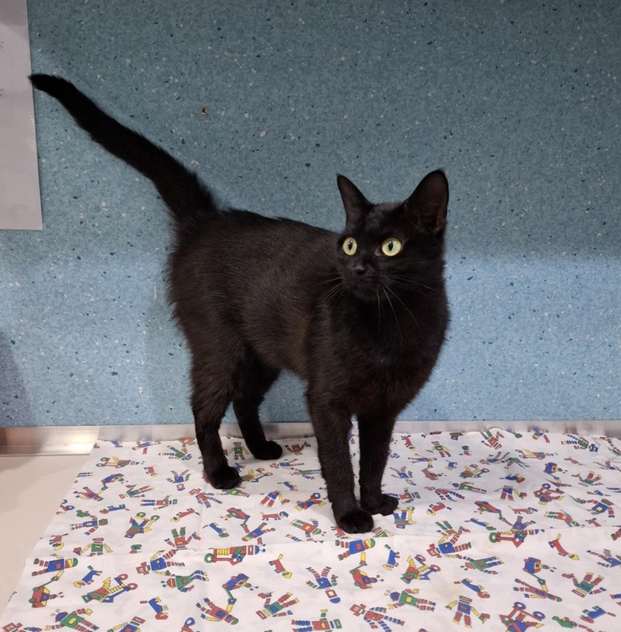 If you’re looking for a calm, loving, and loyal feline companion, Salem is the one for you! This stunning 1-year-old Black Domestic Shorthair is a gentle soul with a heart full of love, just waiting to blossom in a patient and understanding home.