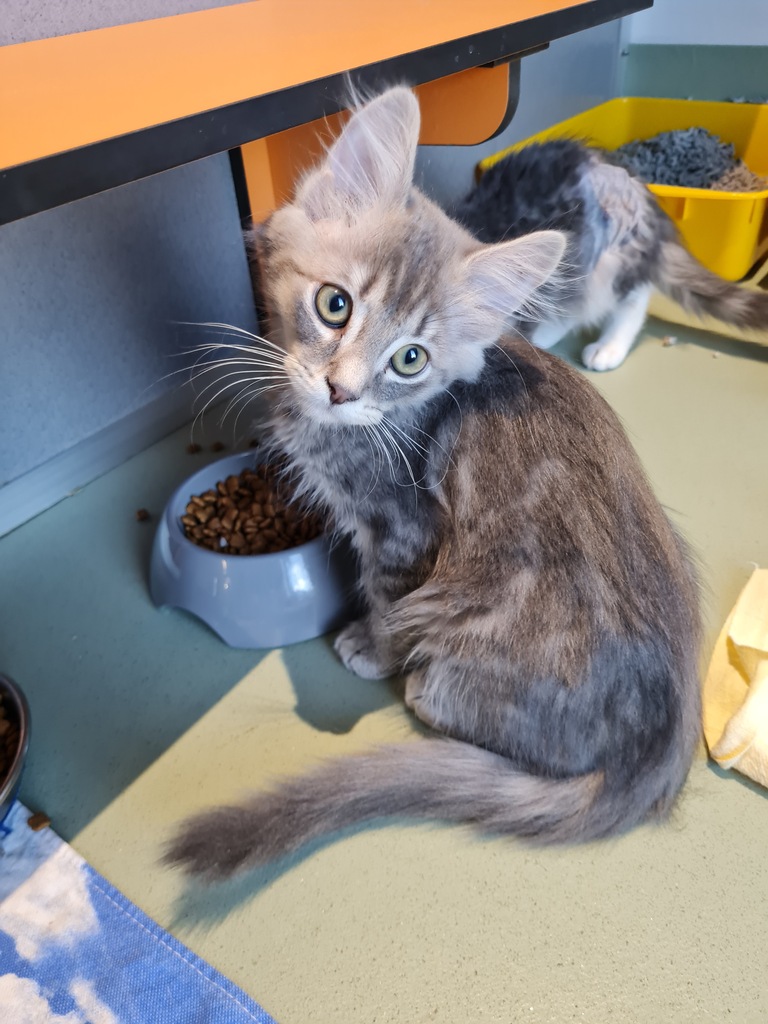 Hey, Hey, I'm Patrick! I'm with my brother waiting to find our fur-ever home. I am a confident little fella who's ready to explore my new home. My brother and I love to play rough and tumble, so if you have another cat friend in the home, I would love to meet them! I also love to entertain myself with toys, so you'll always find me having a blast! I also like to have a nap after a hard day of doing the zoomies... If you're looking for a fun and independent companion, I'm your perfect match!