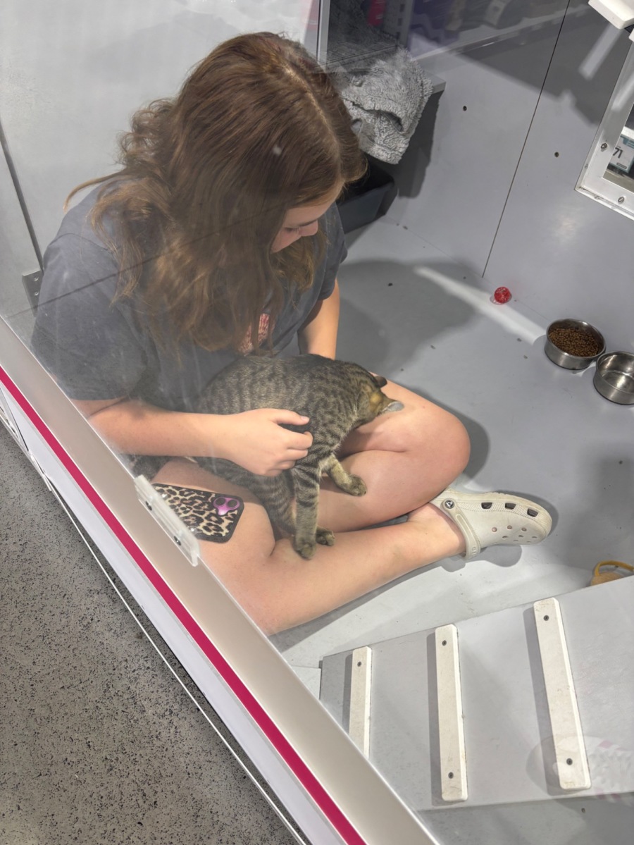 Very playful, snuggly boy once he gets comfortable with his people. Loves a chat, and can be quite loud and demanding when he wants something. He’s good with other cats and kids, still working on making dogs his friend too. Doesn’t like being alone, so would suit someone who’s going to be home a lot or has another cat.