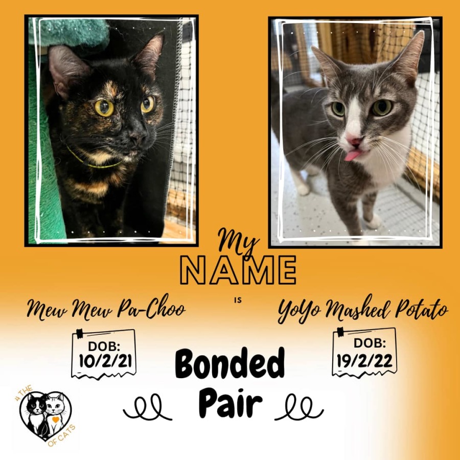 Mew Mew is a beautiful little lady who came in to care by no fault of her own with her brother YoYo Mashed Potato.