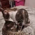 Fairlight has earned herself the nickname Mousy thanks to her sweet little mews that sound just like a tiny mouse 🐭. She is a gentle girl who adores her brother and prefers his company above all others. She always sleeps curled up with him, and while Everhart will happily play with other cats, Fairlight will only play with him.