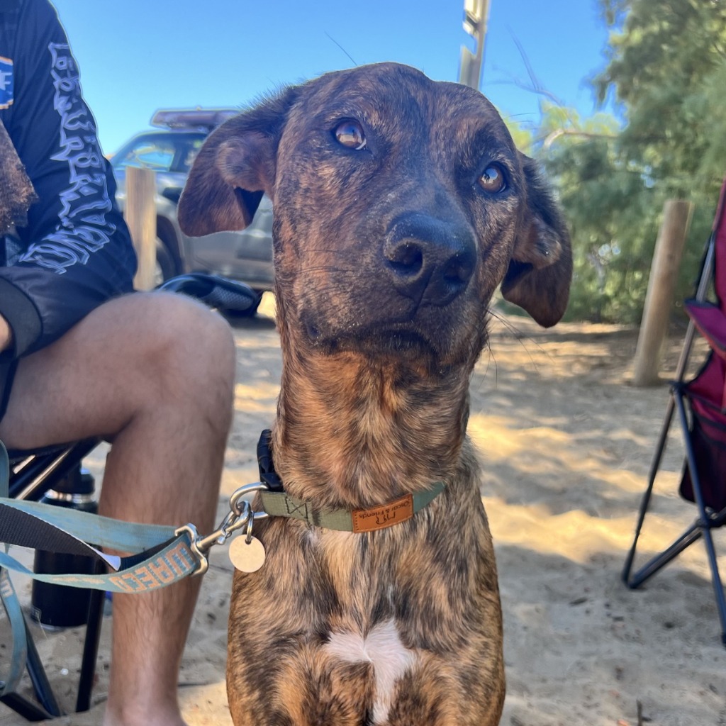 Rosco is a spirited young dog with a heart full of love and an enchanting gaze that will melt your worries away. His beautiful brindle coat and soulful brown eyes radiate affection and loyalty. With a silky, low-shedding coat, he adds elegance to any environment.