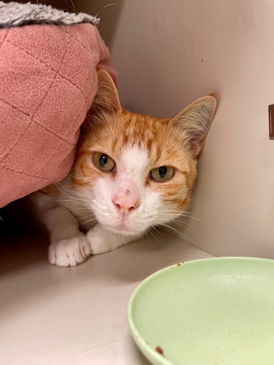 Meet Twister! This sweet ginger boy deserves a loving home where he can feel safe and comfortable. He is shy and will take a while to warm up, but once he feels confident he will waste no time in making you his new best friend.