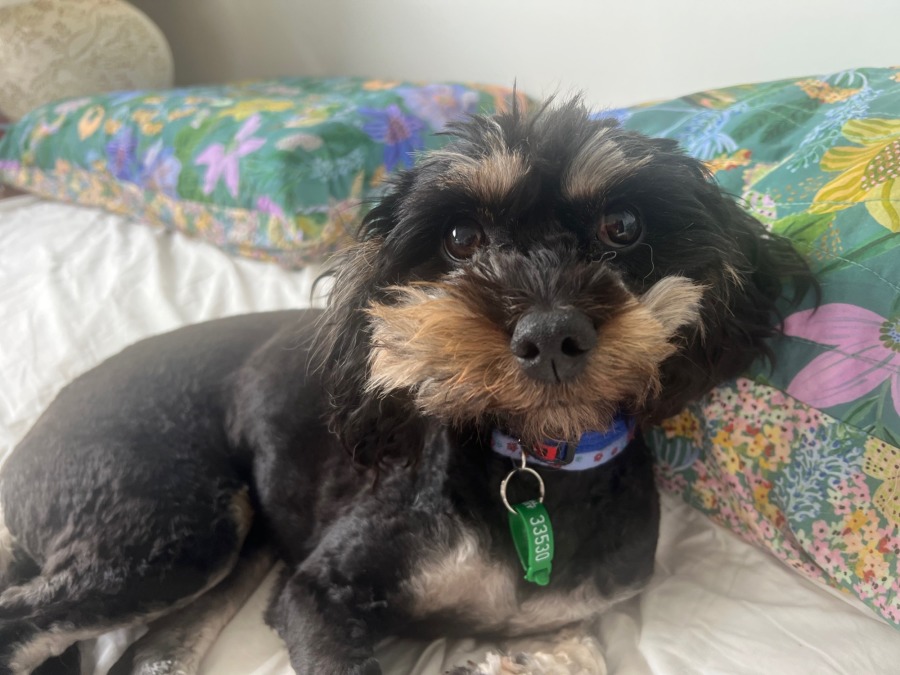 Tilda is the sweetest young lady who is becoming acquainted with this wild world of ours. Rescued from a puppy mill, she continues to blossom, showing delightful quirky traits as she plays with her foster carer's Jack Russell, helping herself to the dog toy basket, playing tug-o-war with her favourite giraffe toy and morning mini zoomies of joy. It's taken a while to get here though, and Tilda will need a special patient someone to shower her with love and gently continue coax her out of her shell to become the confident, happy and trusting dog she deserves to be. Tilda would also LOVE to go to a home with another gentle dog to play with- no young children however as she still gets quite scared of sudden moves and loud noises. Her foster carer is so proud of how far Tilda has come in a short time. Other than a few accidents, likely having been caged to pee and eat in the same small space, Tilda let's her foster mum know when she wants to go downstairs to go to the toilet. At first, she didn't know how to walk on a lead; however, she is making leaps and bounds enjoying her little walks. Her home will be her palace, and she will be your loyal snuggle bum, ready to velcro to your side, lie with her brother/sister and find a snuggly nook to nestle into.
