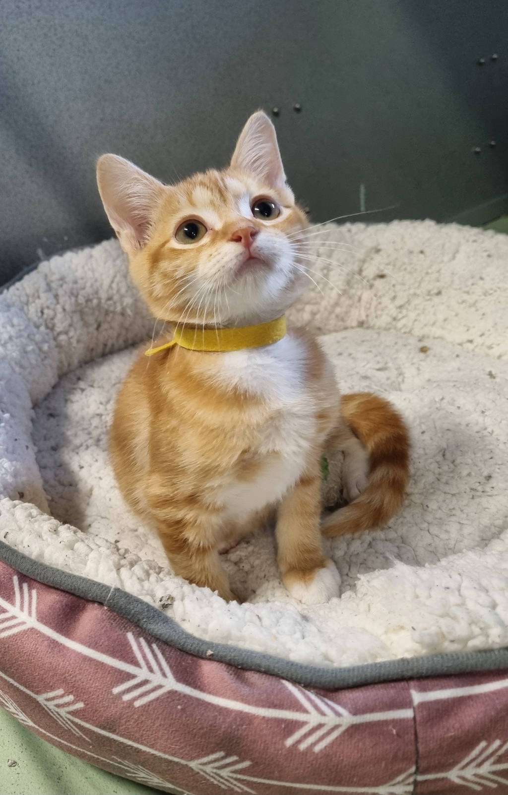 Hey there, I'm Squash! I'm a playful little kitten with a heart full of love and a lot of energy. My favorite thing in the world is chasing after toys, pouncing on anything that moves, and running around like a silly kitty. I've got lots of energy to burn, but after I've had my fun, I'm all about snuggling up and relaxing. I'll happily curl up in your lap and purr away while you pet me-because let's be honest, who wouldn't want a cuddle buddy like me?