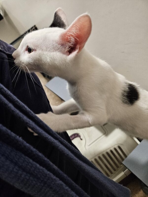 This handsome young man is called Mars. As you can see Mars is an affectionate young boy that loves to play and give you smoochie hugs, or sit on your shoulder..... He will require a scratching post, toys, stringed toys, litter tray and a comfy bed to call his own to help him settle in. He will love nothing better than to explore his new castle and find all his favourite spots to plot new mischievous things to get up too. If you feel that you could have this sweet boy as your new best friend, please ask a staff member to meet him today!!!